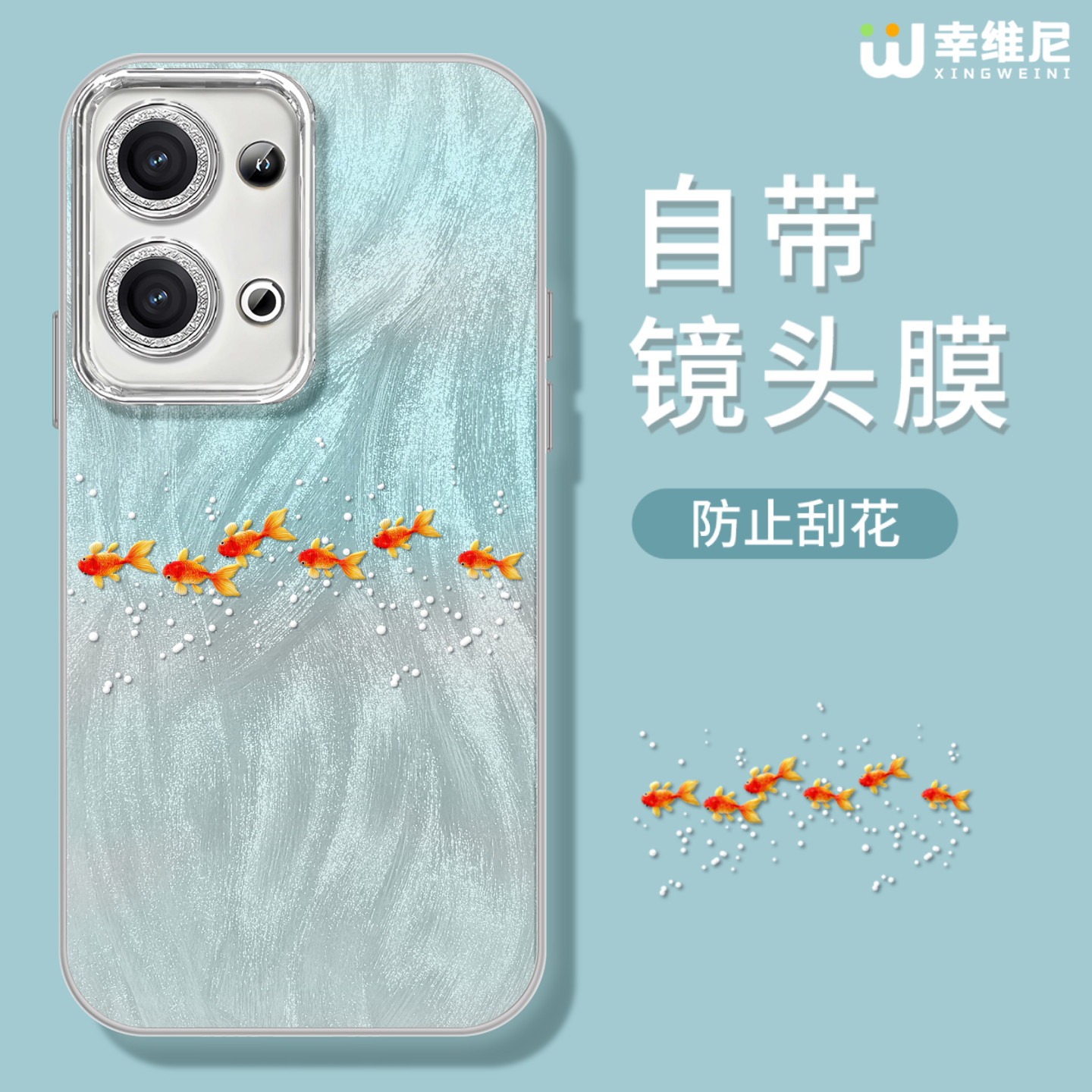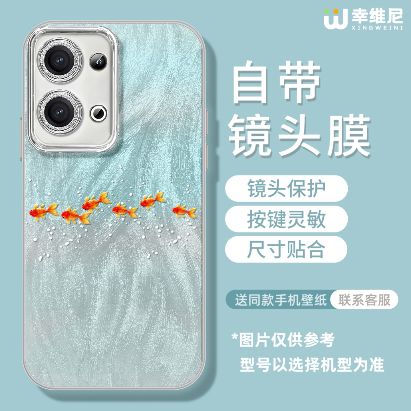 适用opporeno14手机壳pro女款 锦鲤reno15 reno13pro保护套12镜头膜11全包56防摔reno7se高级reno8硬壳9pro个性