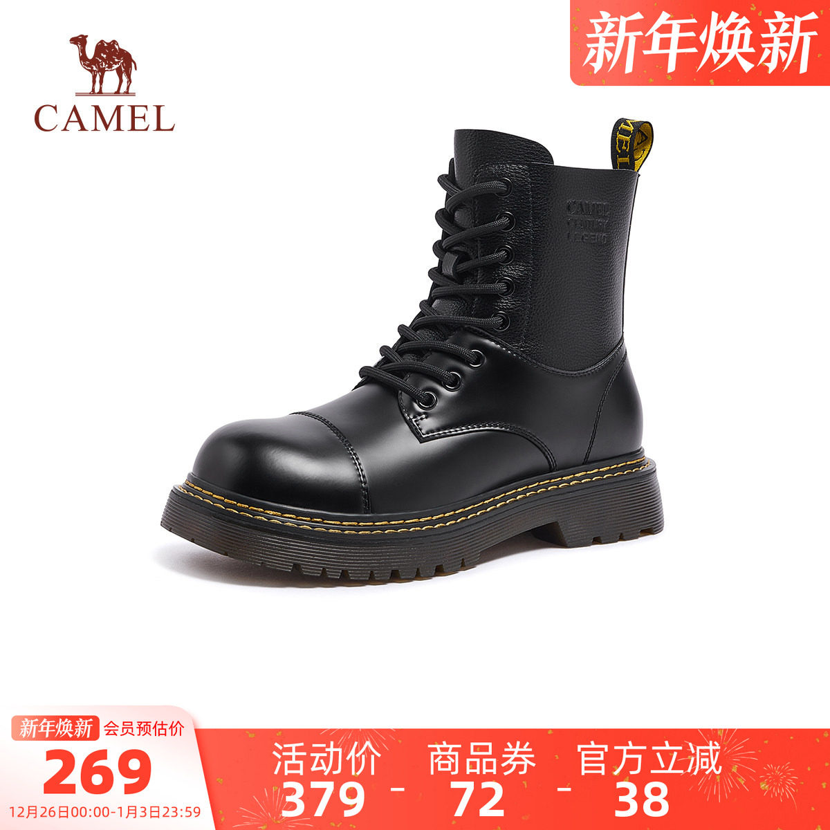 复古厚底加绒工装 骆驼女鞋 马丁靴女款 新款 户外机车骑士靴 2025秋季