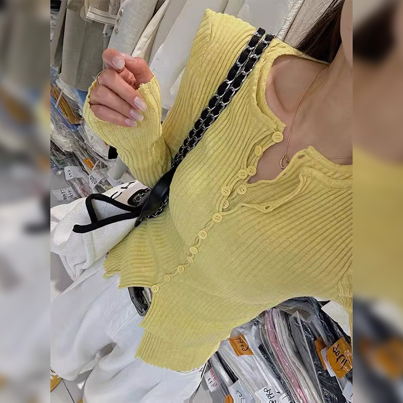 显瘦薄款 早秋时尚 V领修身 轻熟港风韩版 设计感别致针织上衣女 新款