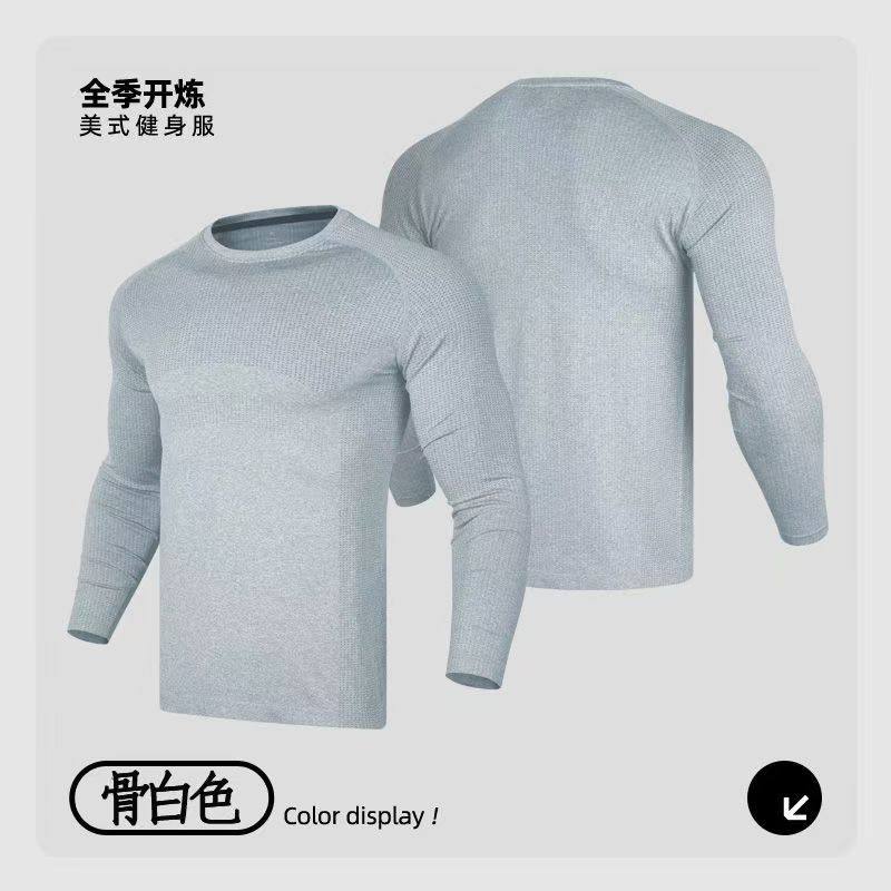T恤 训练健身户外显壮上衣运动速干修身 GTAL美式 无缝提花拉链长袖