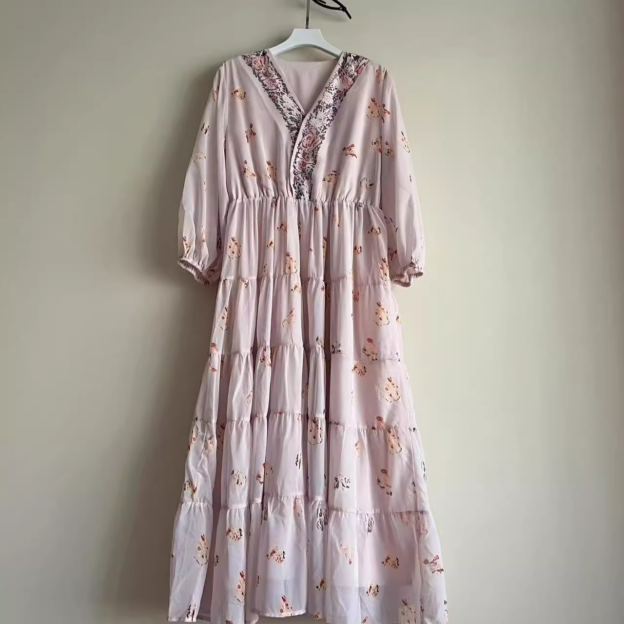 杂款 裙子 精品长裙批发连衣裙夏气质显瘦收腰碎花雪纺中长款