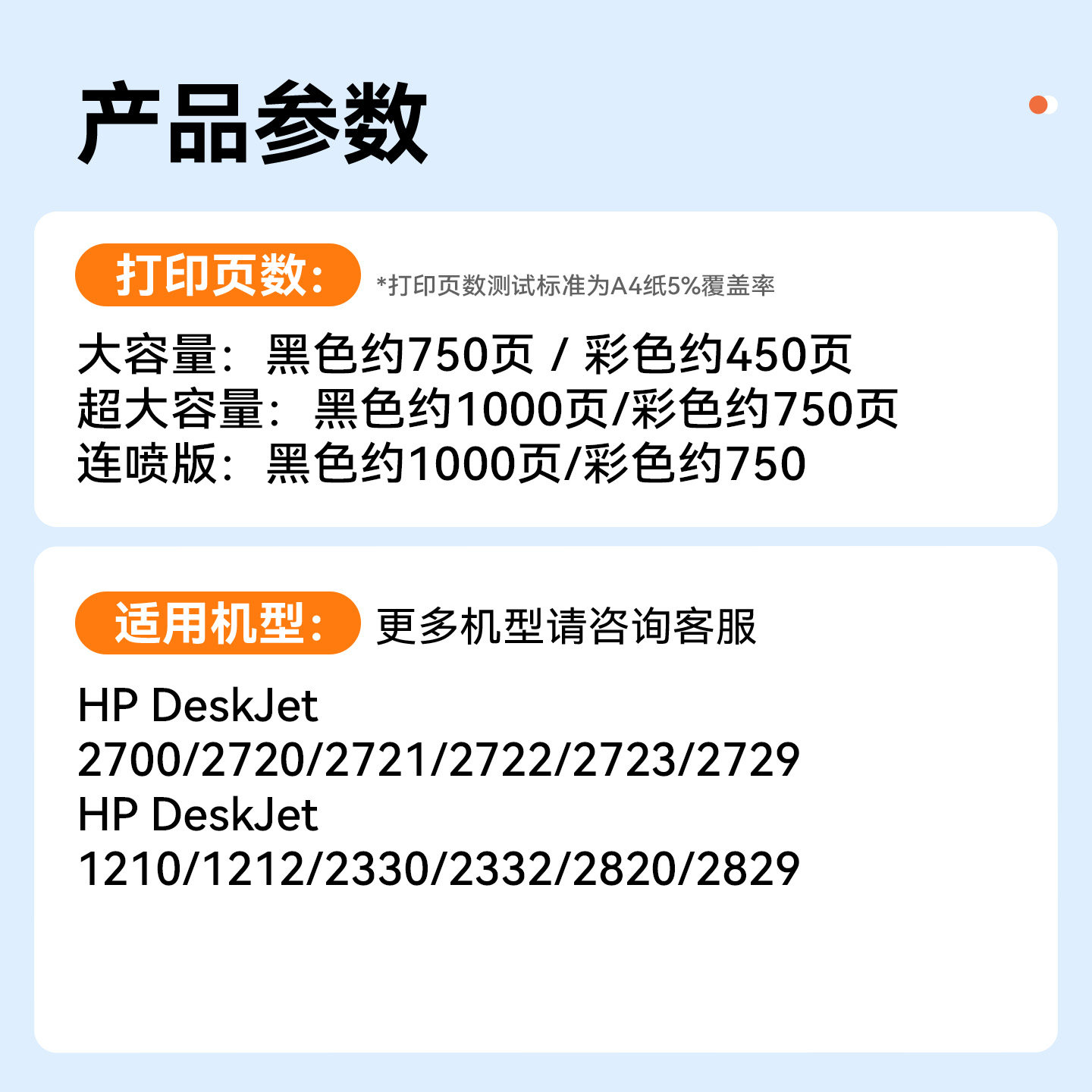 1212 4228打印机 4227 2822 2723 2721 2823 2729 2720 4221 805黑色彩色墨盒适用hp惠普2332 2722 2828 2821
