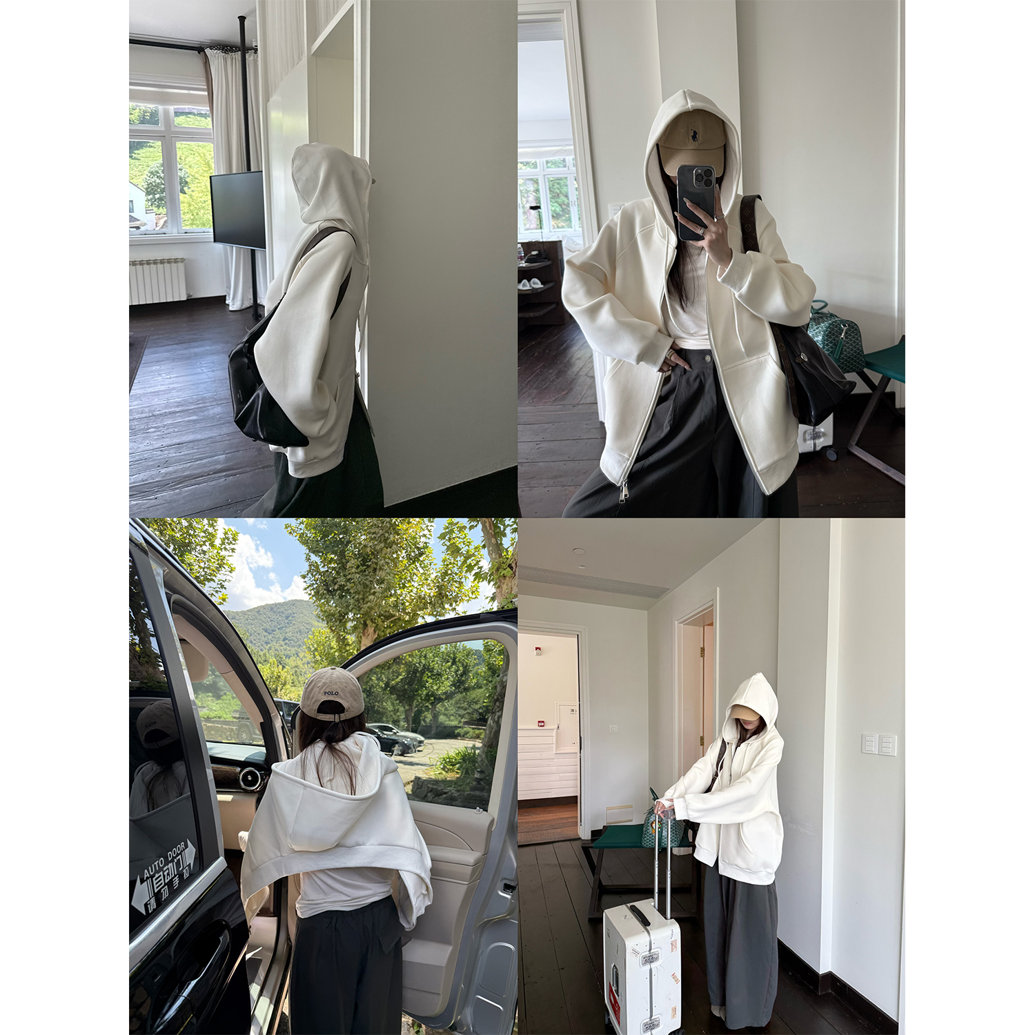 高克重复合拉链连帽卫衣外套女 万能好穿 superniniyy 素颜卫衣