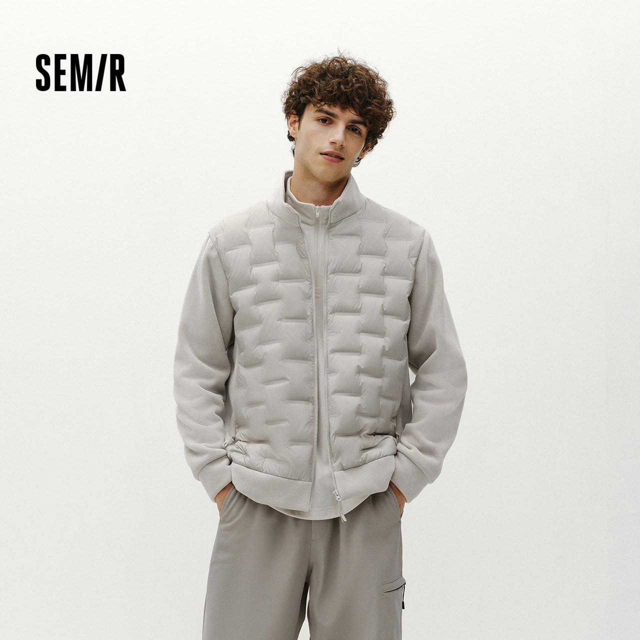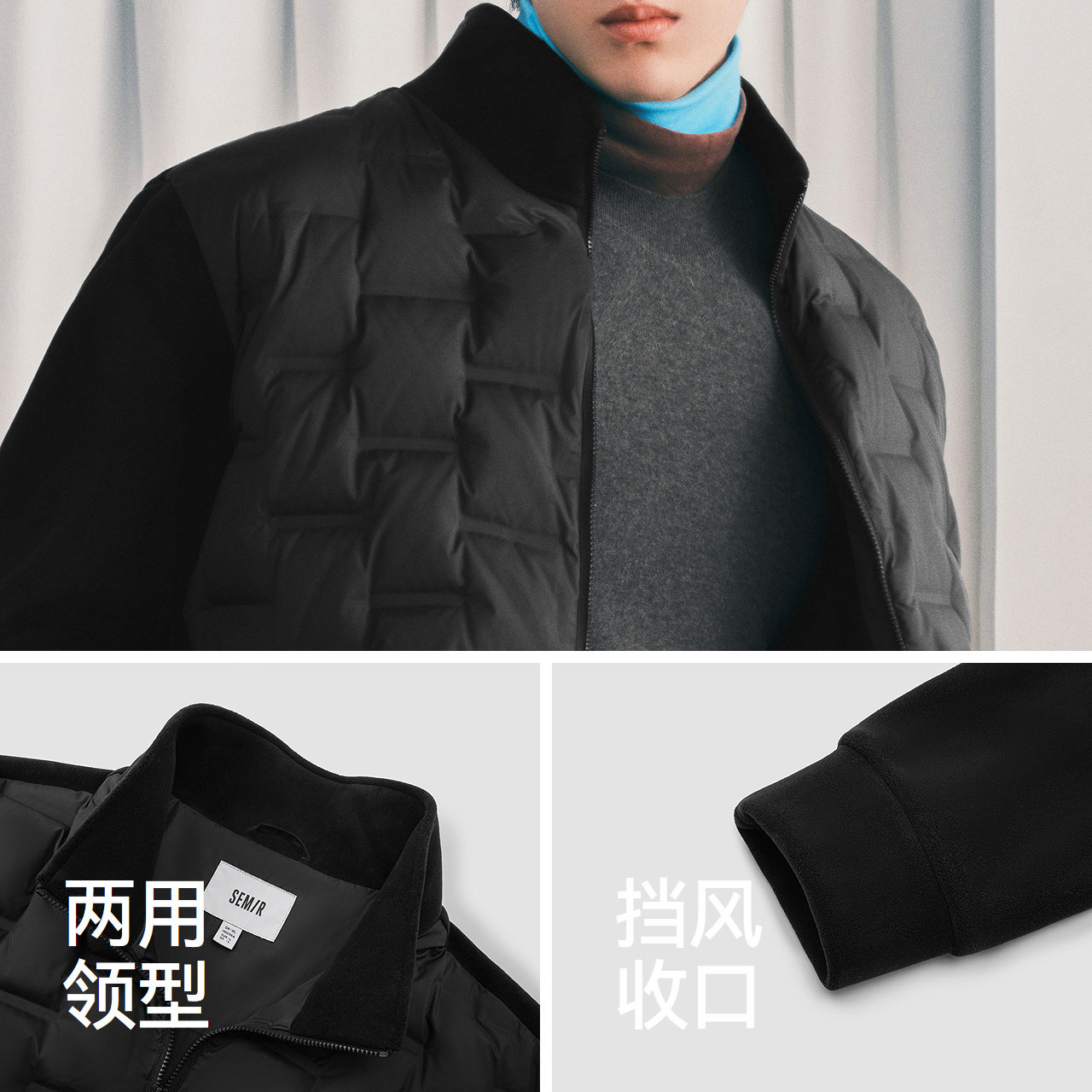 新款 森马轻薄羽绒服2025冬季 拼接摇粒绒外套鹅绒夹克男 商场同款
