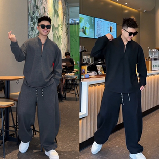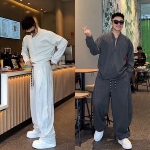 高品质秋季 运动套装 时尚 男女款 潮牌 休闲百搭半拉链卫衣休闲裤 韩版