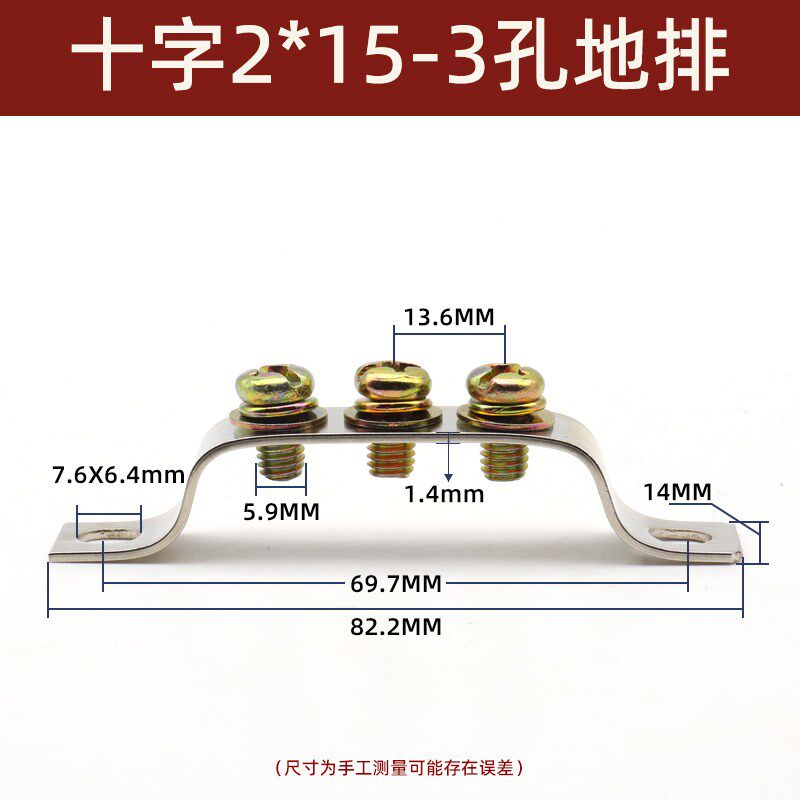 接线端子排配电箱汇流铜排KT053 总长82.2黄铜零地排 3孔地排2