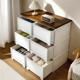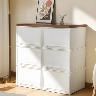 日本抽屉式 收纳柜落地多层阳台杂物储物斗柜带木板塑料衣服收纳箱