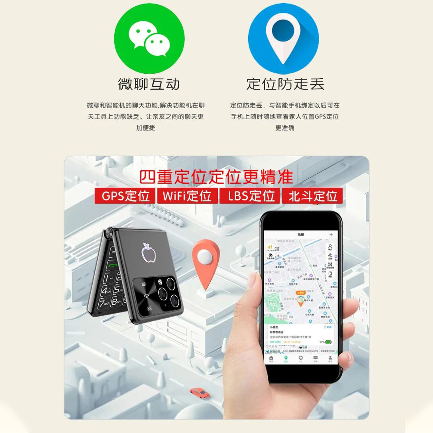 定位微聊翻盖老年人手机学生戒网瘾折叠拍照支付手机 视频通话