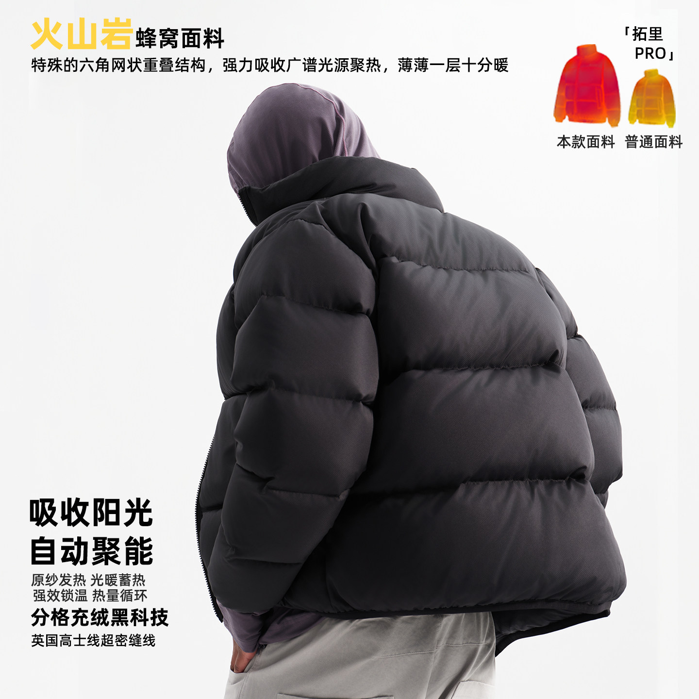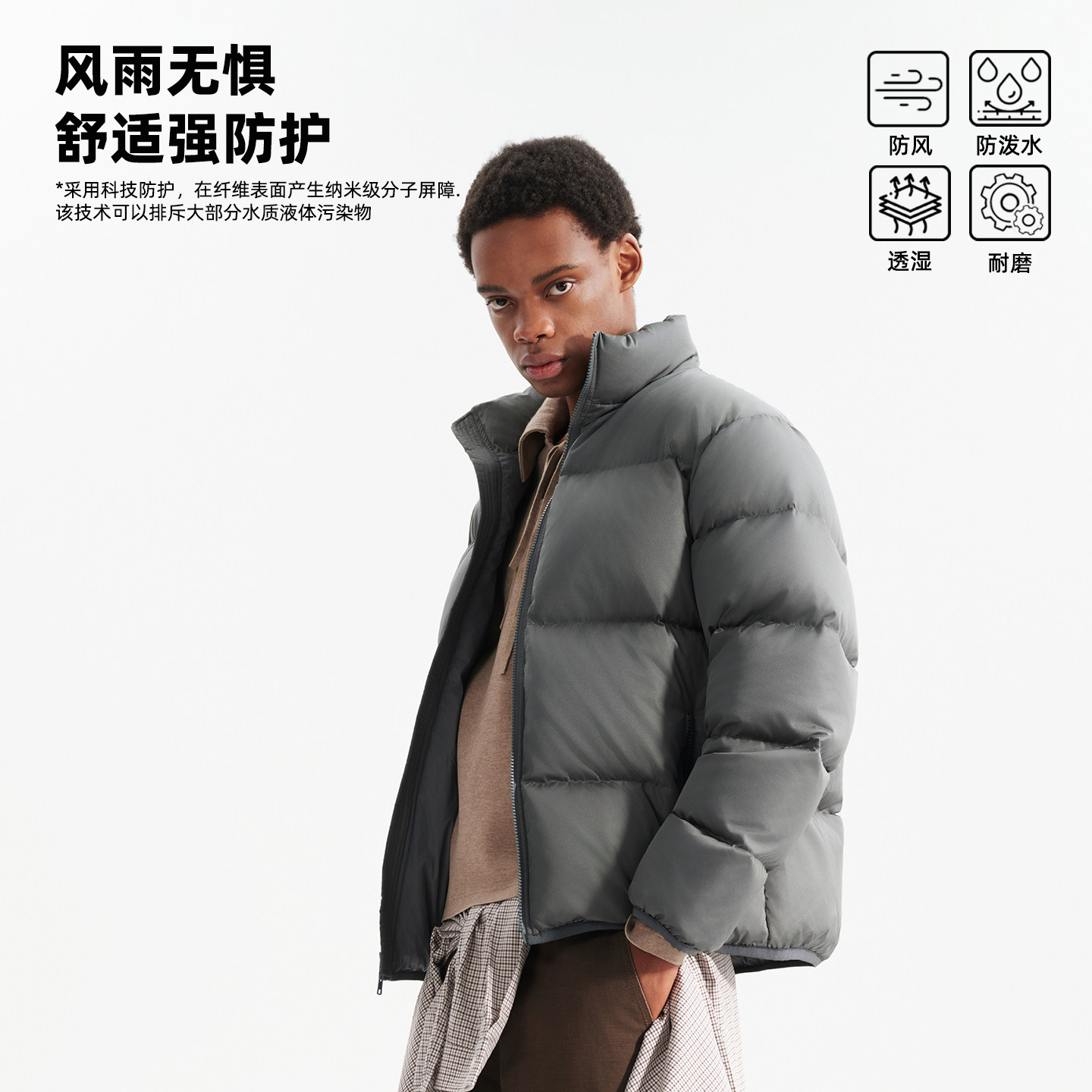 800蓬95白鸭绒安心绒面包服羽绒服男女外套冬 立领短款 S级暖壳