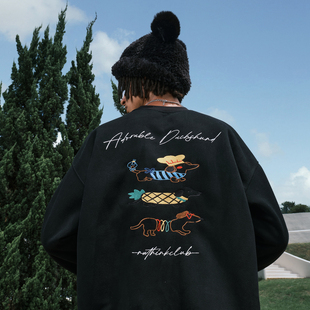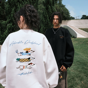 PFR AND豹纹贴布刺绣连帽卫衣情侣宽松潮牌加绒运动休闲套头帽衫