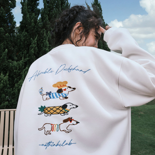 字母印花圆领T恤纯棉百搭情侣卫衣 男秋美式 青少年白色长袖 打底衫