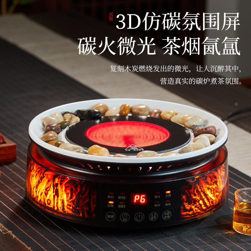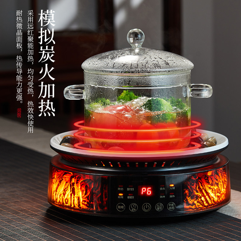 3D火焰围炉煮茶器电陶炉星火炉家用室内茶饮机全玻璃养生壶电茶炉