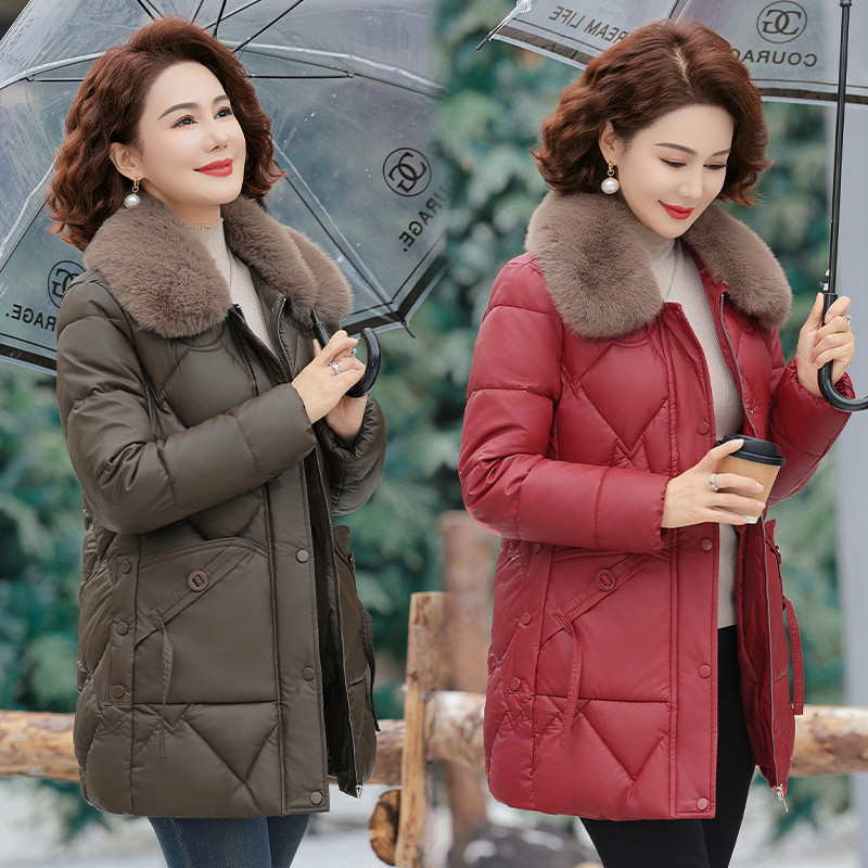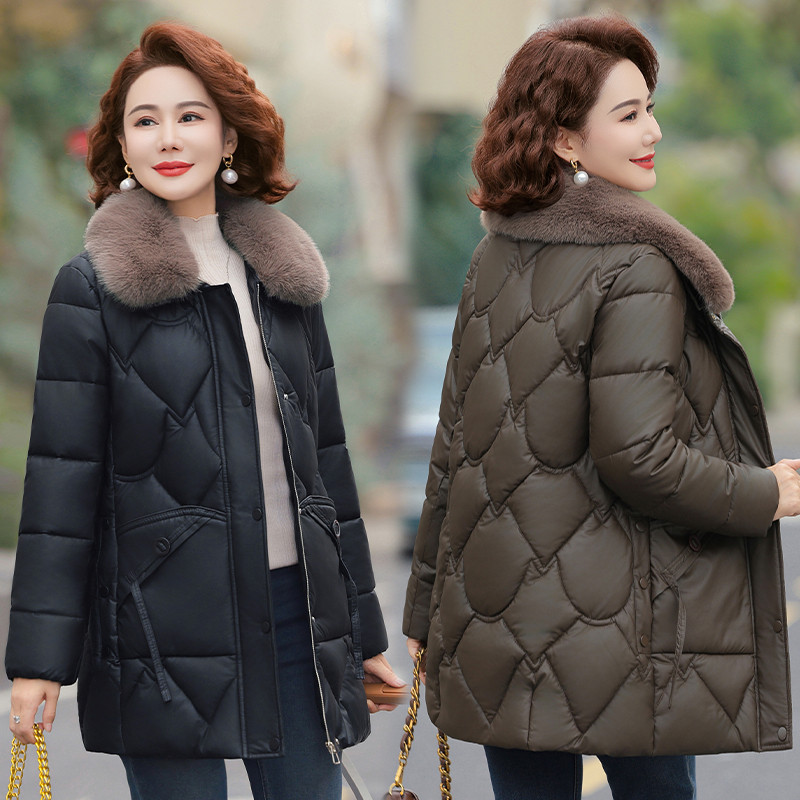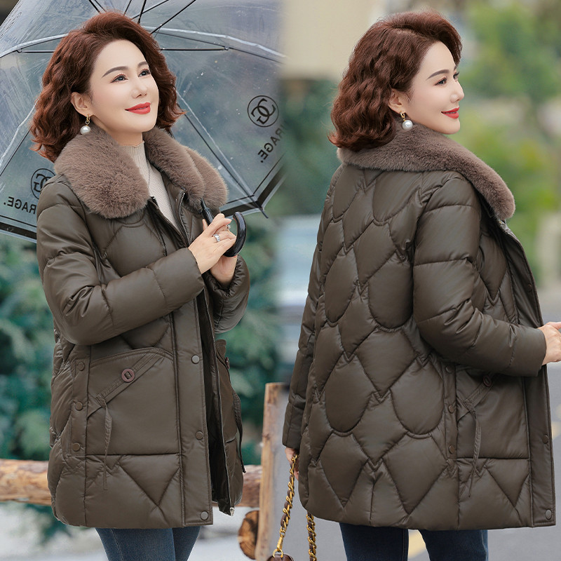 复古菱形格夹棉外套200斤 女装 胖mm冬季 巴恩翻领棉服木子理想大码