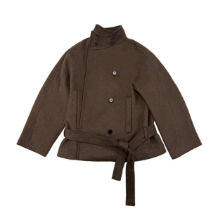可拆卸垫肩 JCAESAR 呢大衣 系带短款 奥地利羊毛混纺外套 WOMEN