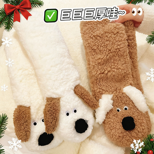 可爱小狗加绒加厚居家防滑地板袜秋冬暖脚保暖袜女睡眠袜圣诞袜子