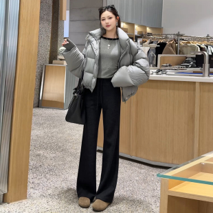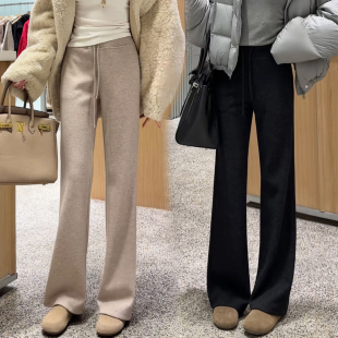 女高腰垂感直筒显瘦显腿长喇叭裤 2026春秋新款 羊毛加绒加厚微喇裤