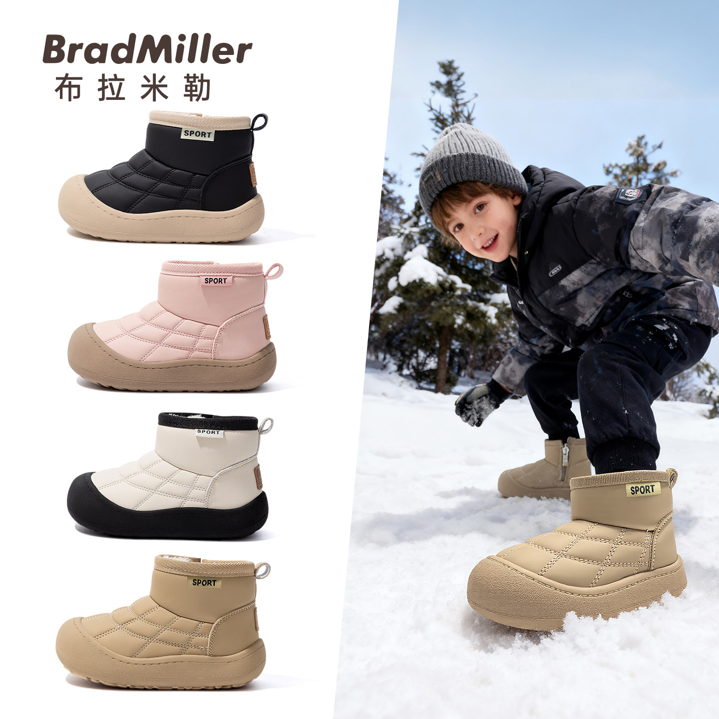 加绒棉鞋 UBZ 加厚低帮短靴面包鞋 一脚蹬冬季 防水雪地靴女2025新款