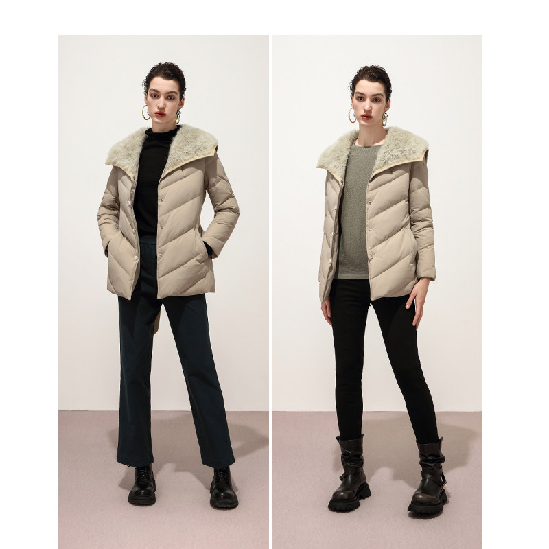 Keywearcloud奇威奢华吸睛大毛绒领系带收腰羽绒服