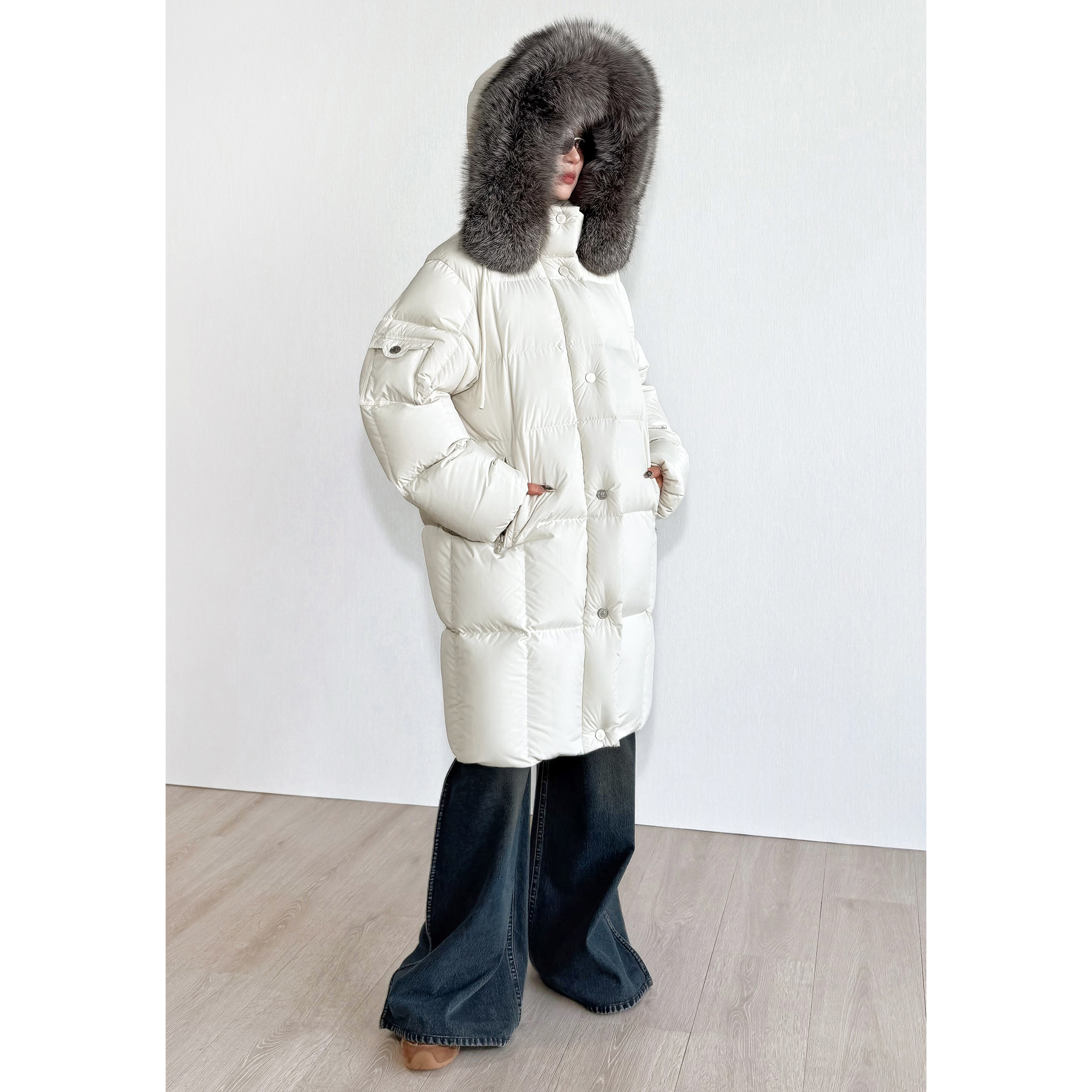羽绒服 银狐大毛领中长款 NancyCavally专柜款 極柔泡芙感95白鹅绒