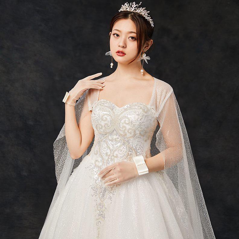 轻纱齐地出门纱抹胸简约大拖尾主纱 主婚纱韩式 婚纱2025新款 新娘