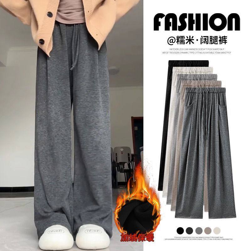 灰色糯米裤 女高腰阔腿垂感宽松小个子美拉德休闲直筒遛弯裤