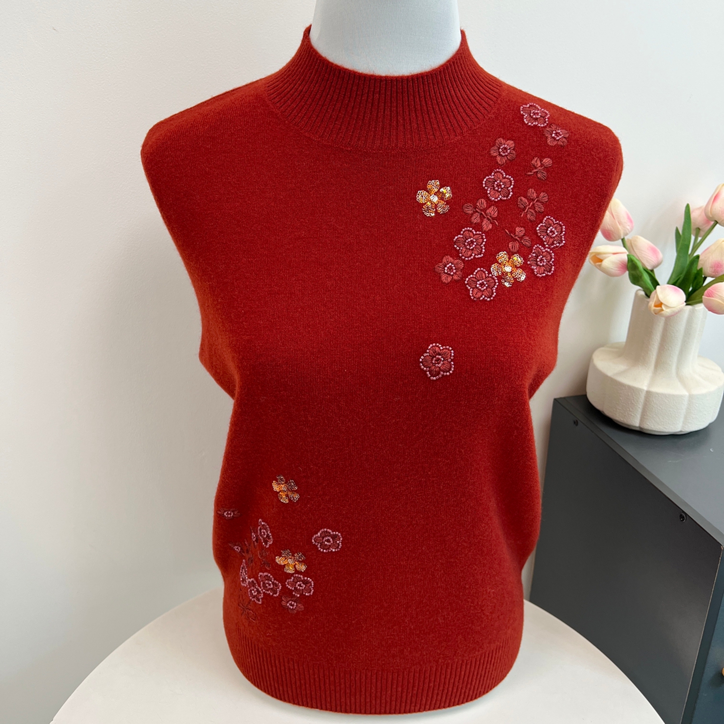 毛衣中老年奶奶半高领绣花保暖打底衫 妈妈装 秋冬新款 100%纯羊毛衫