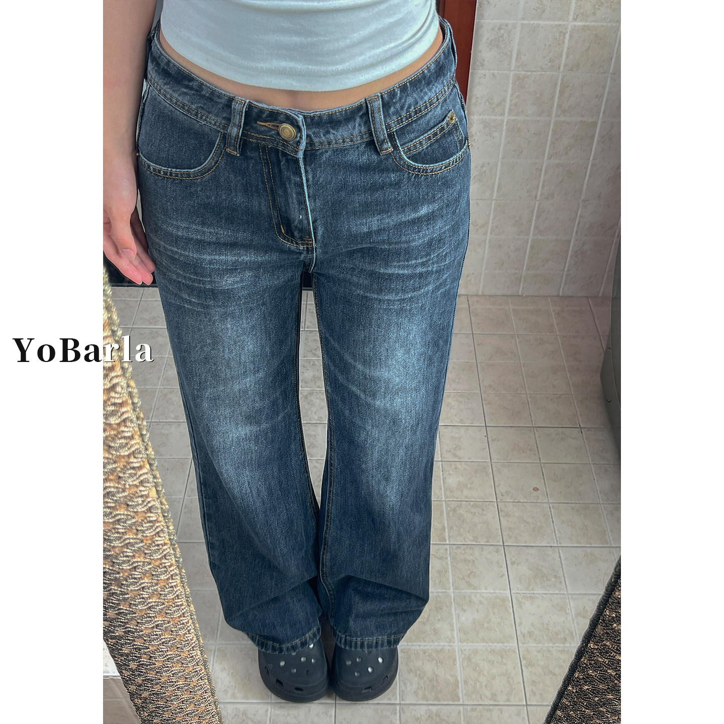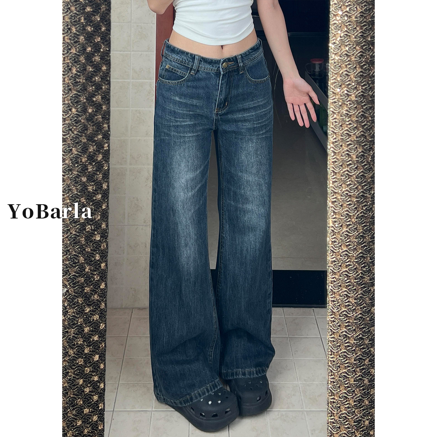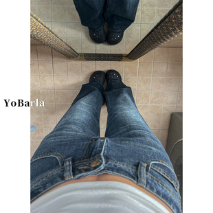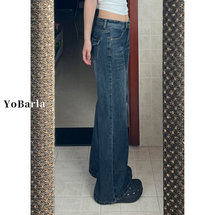 子 女秋宽松加长显瘦拖地阔腿镰刀裤 Pettyelsa美式 复古弯刀牛仔裤