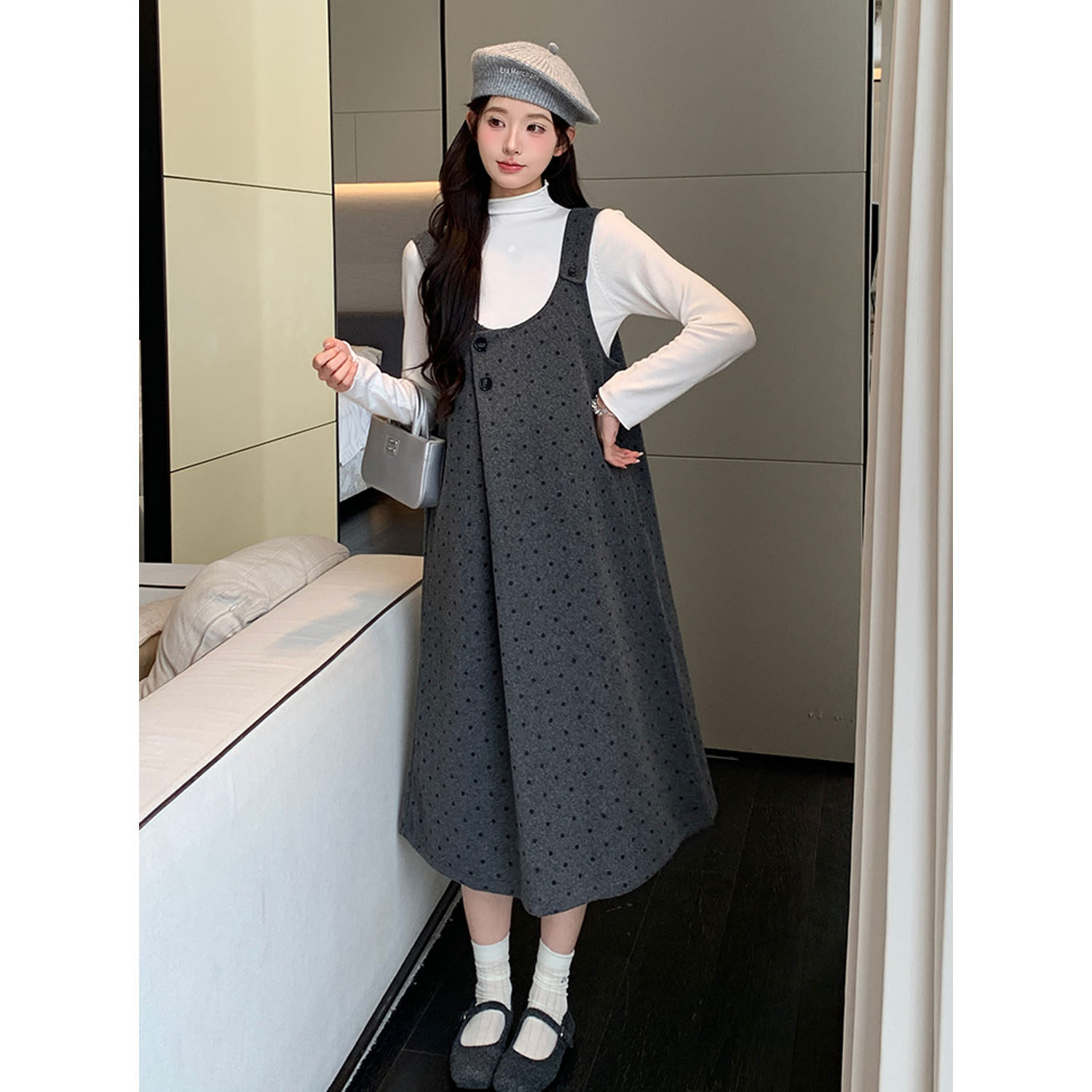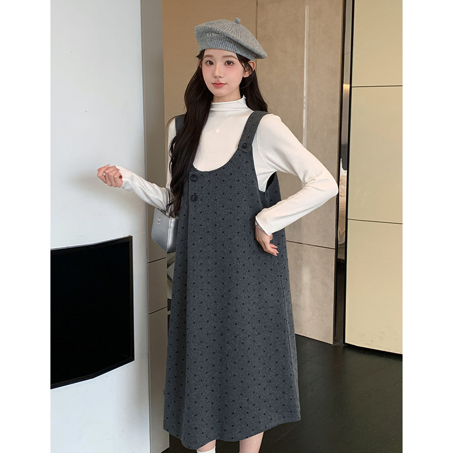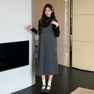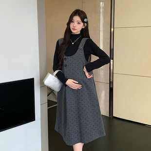 内搭波点背带连衣裙秋季 孕妇套装 半高领打底衫 2025新款 两件套 秋装