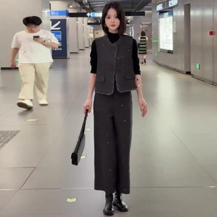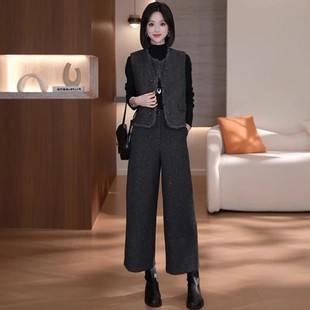 气质套装 阔腿裤 女秋冬季 超火马甲打底衫 三件套 2025新款 小香风时尚