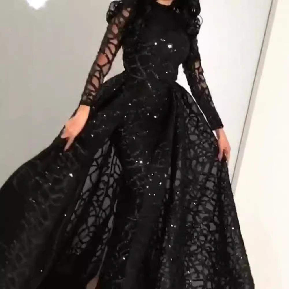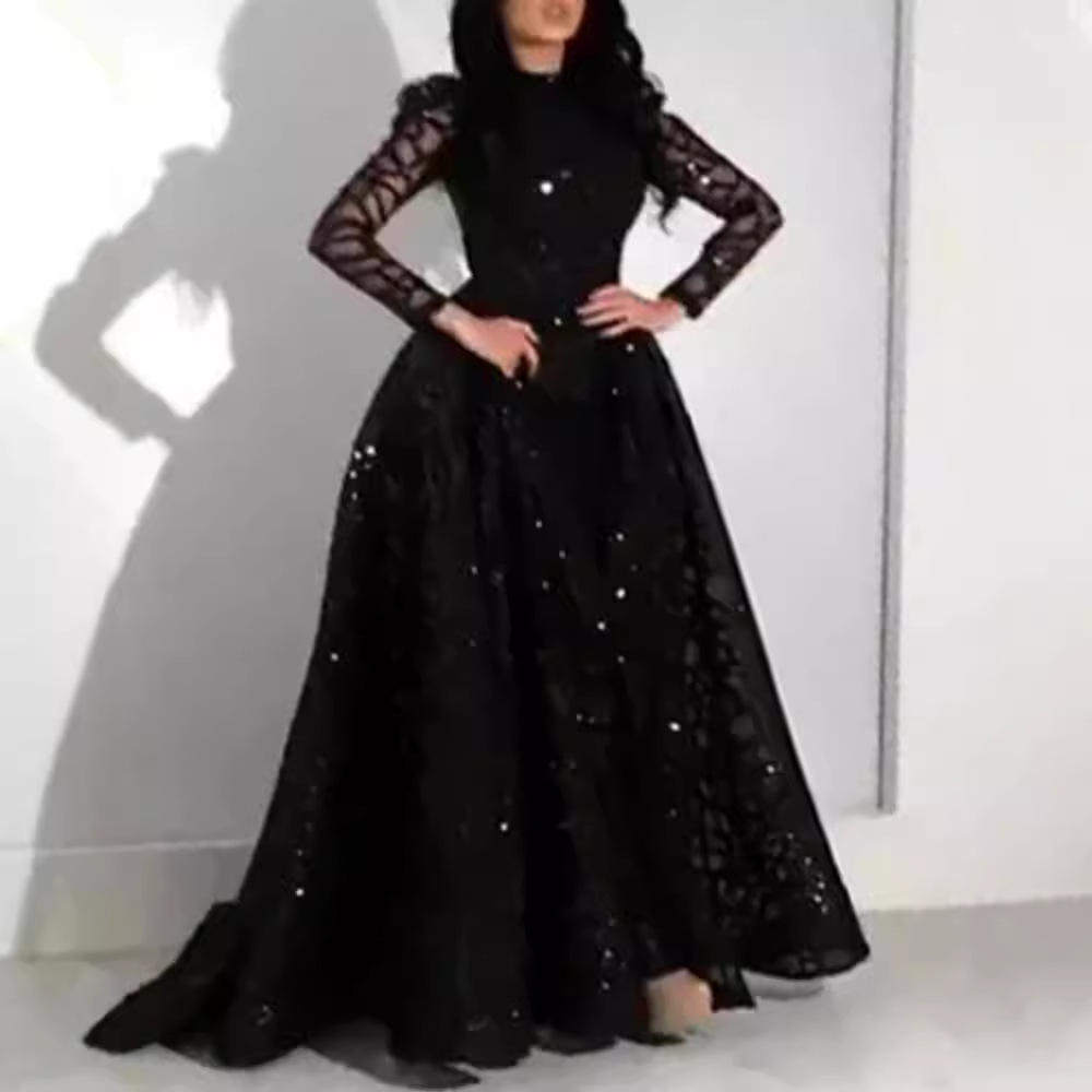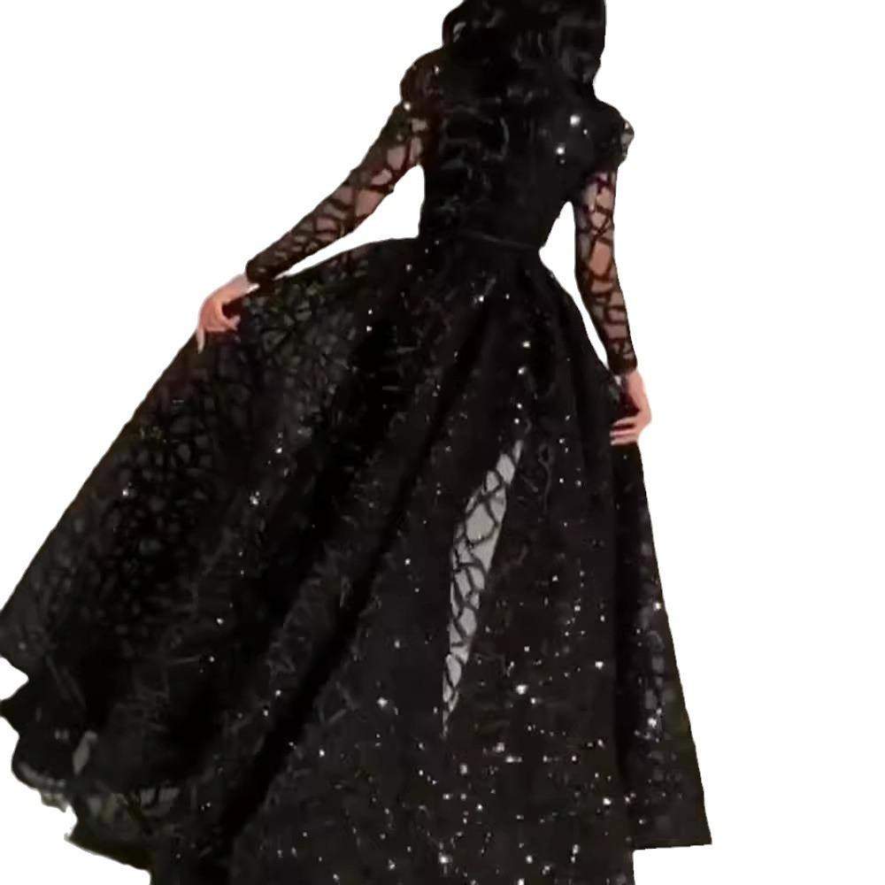 独立站亚马逊长袖 欧美外贸女装 亮片大摆晚礼服婚纱 2020春夏季 新款