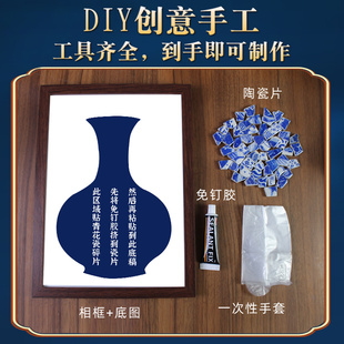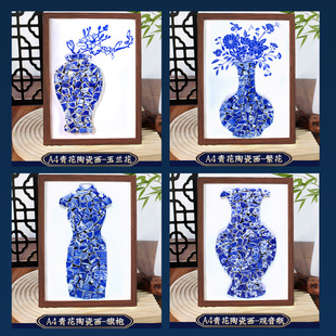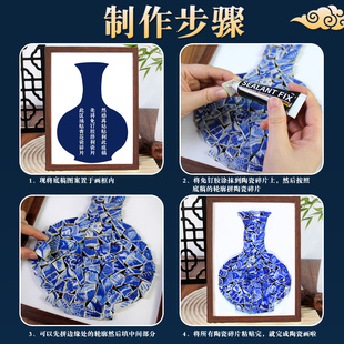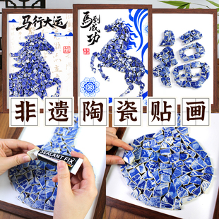 非遗青花瓷拼贴画手工艺diy材料包相框画马年传统文化陶瓷片作品