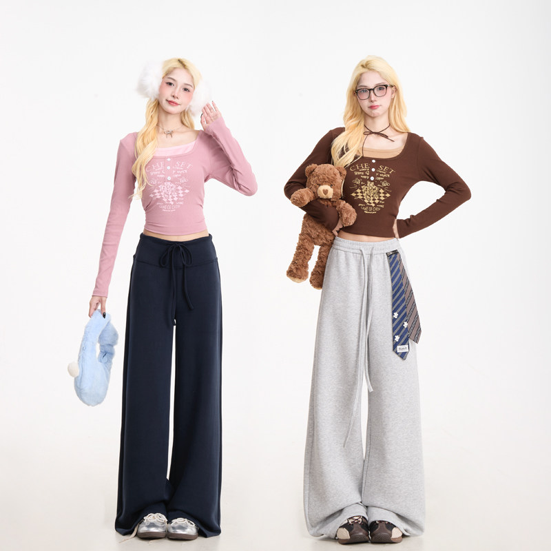 打底上衣 T恤女早秋少女设计感显瘦短款 NERESUM美式 复古假两件长袖