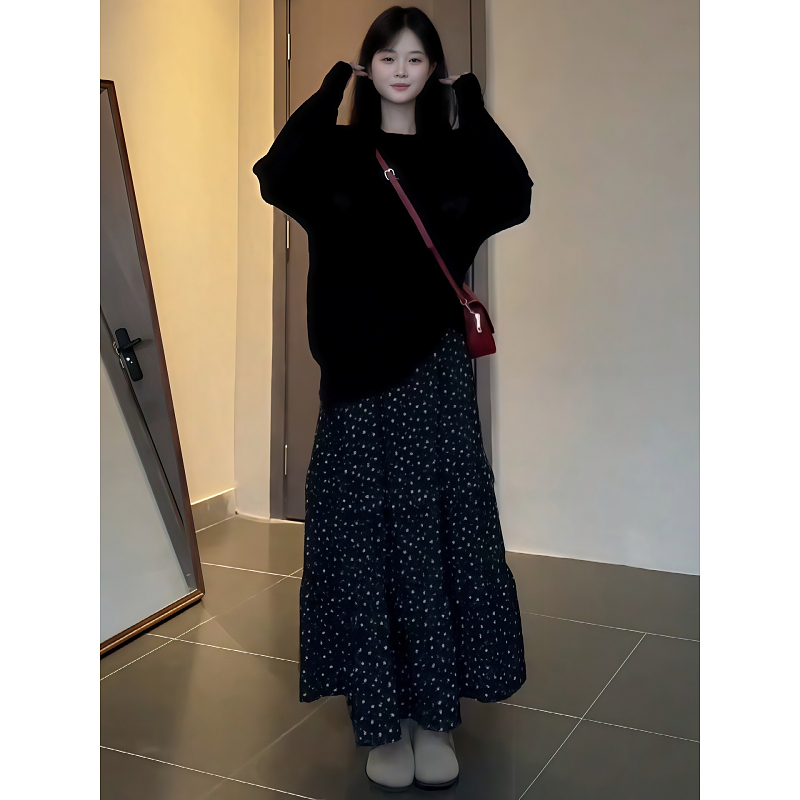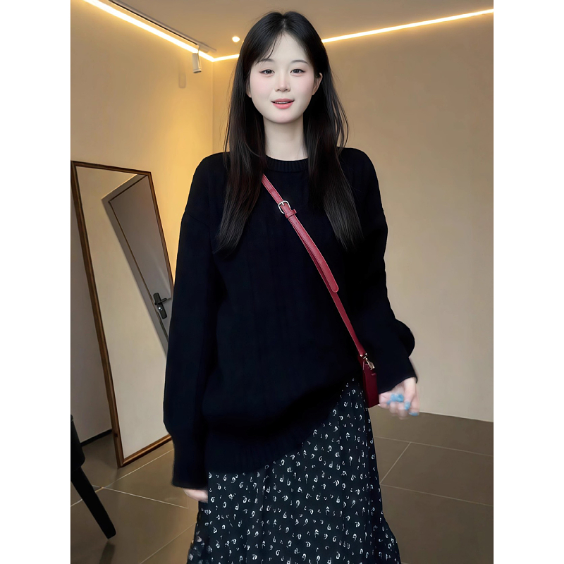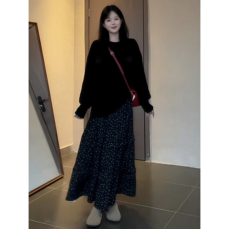 圆领毛衣女半身长裙套装 大码 长袖 穿搭秋冬新款 韩系温柔风通勤时尚