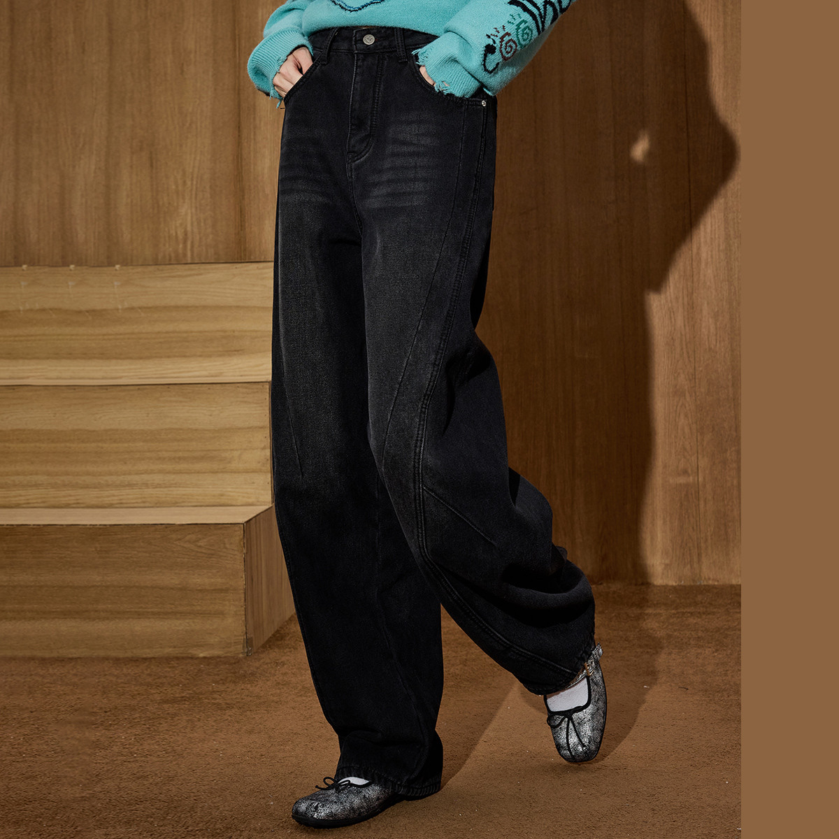 牛仔裤 coolhut高级感休闲百搭阔腿弯刀加绒分割宽松2025冬季 女式