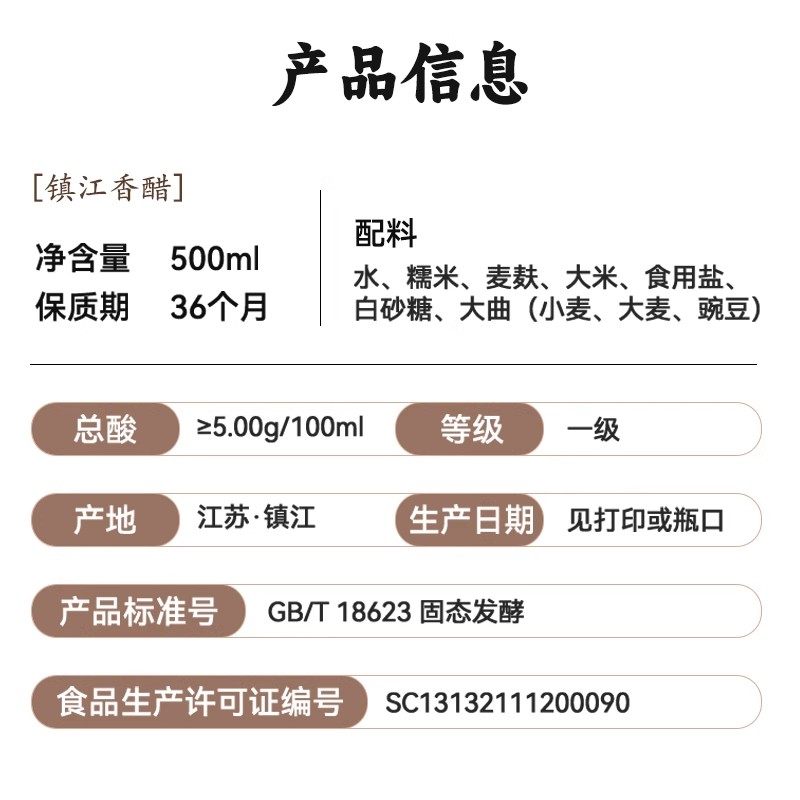 恒顺味业香醋500ml新B香酿造食醋镇江特产蘸食炒菜香醋家庭调味品