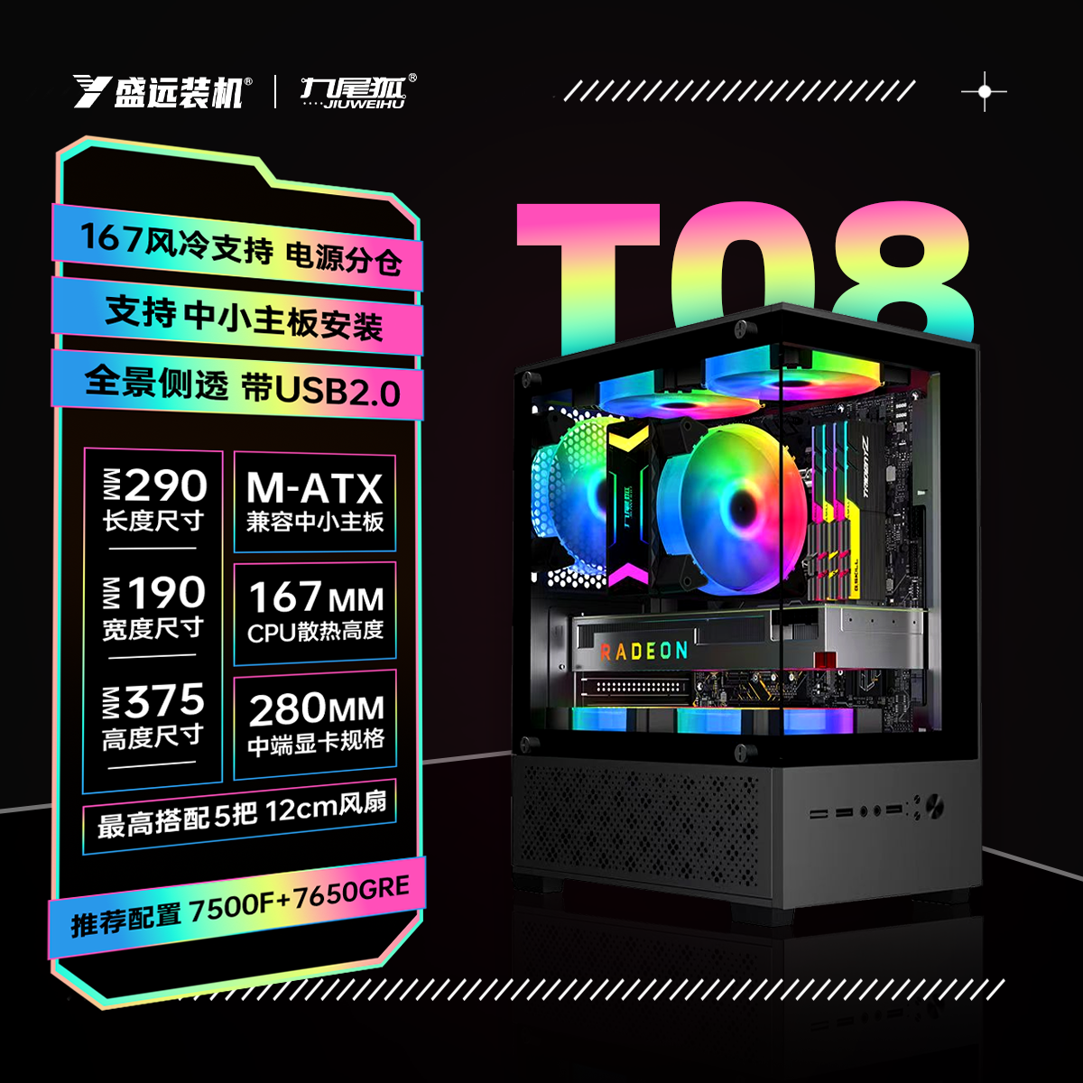 长城视界S1mini海景房机箱无立柱MATX台式 电脑240水冷