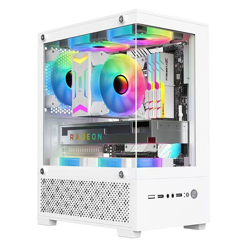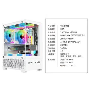 海景房侧透MINI电脑机箱台式 atx白色侧透黑色240水冷电竞 主机m