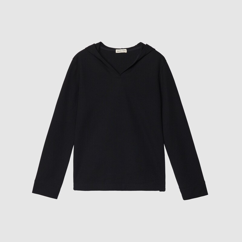素然ZUCZUG4M36 秋女士桑蚕丝莱赛尔空气层V领连帽卫衣