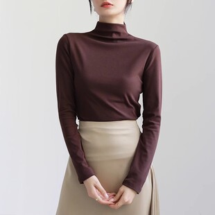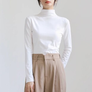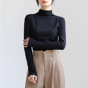 春秋冬纯棉中领修身 t恤2025新款 上衣 女内搭长袖 黑色半高领打底衫