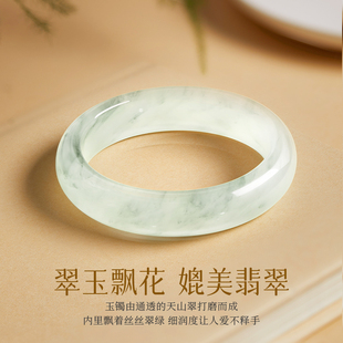 老凤祥猫眼石手镯女白月光镯子宽条白透冰透手镯生日礼物送女友