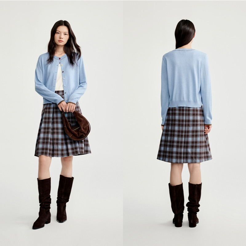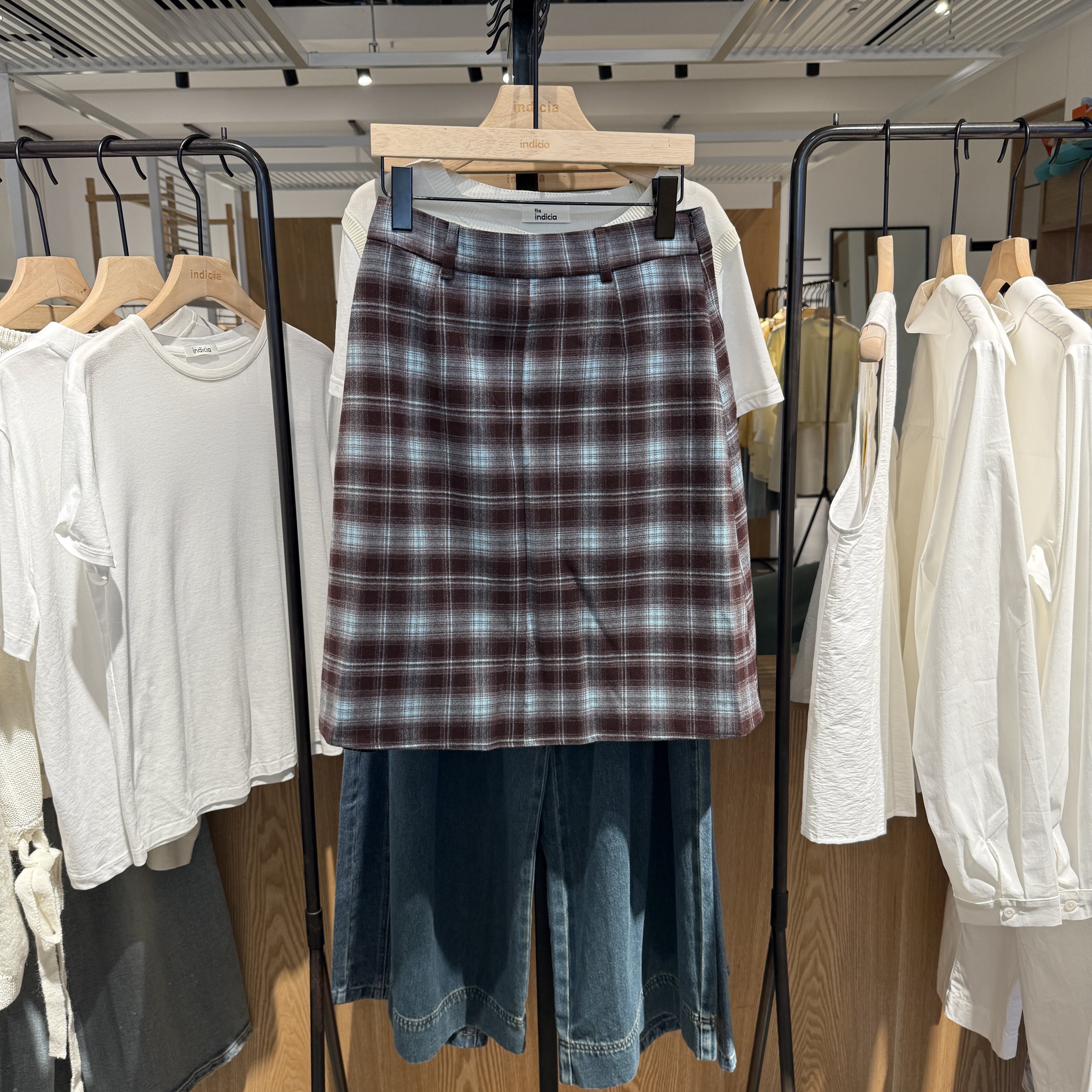 indiciaTHEL2C5QZ165专柜正品 学院风咖格半身裙女吊牌689 标记女装