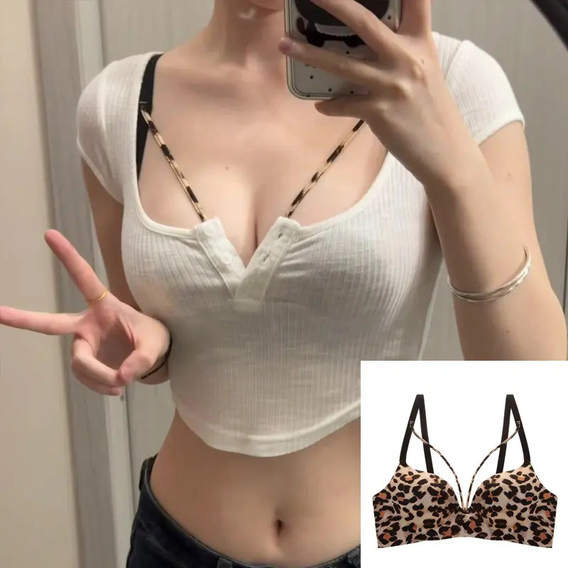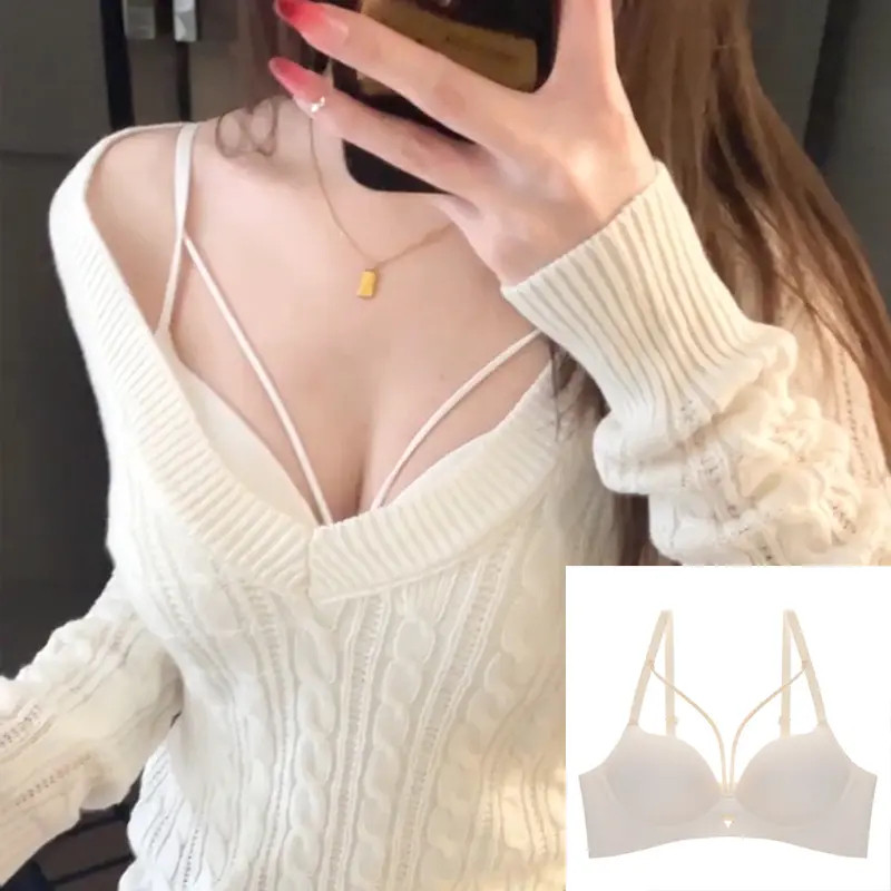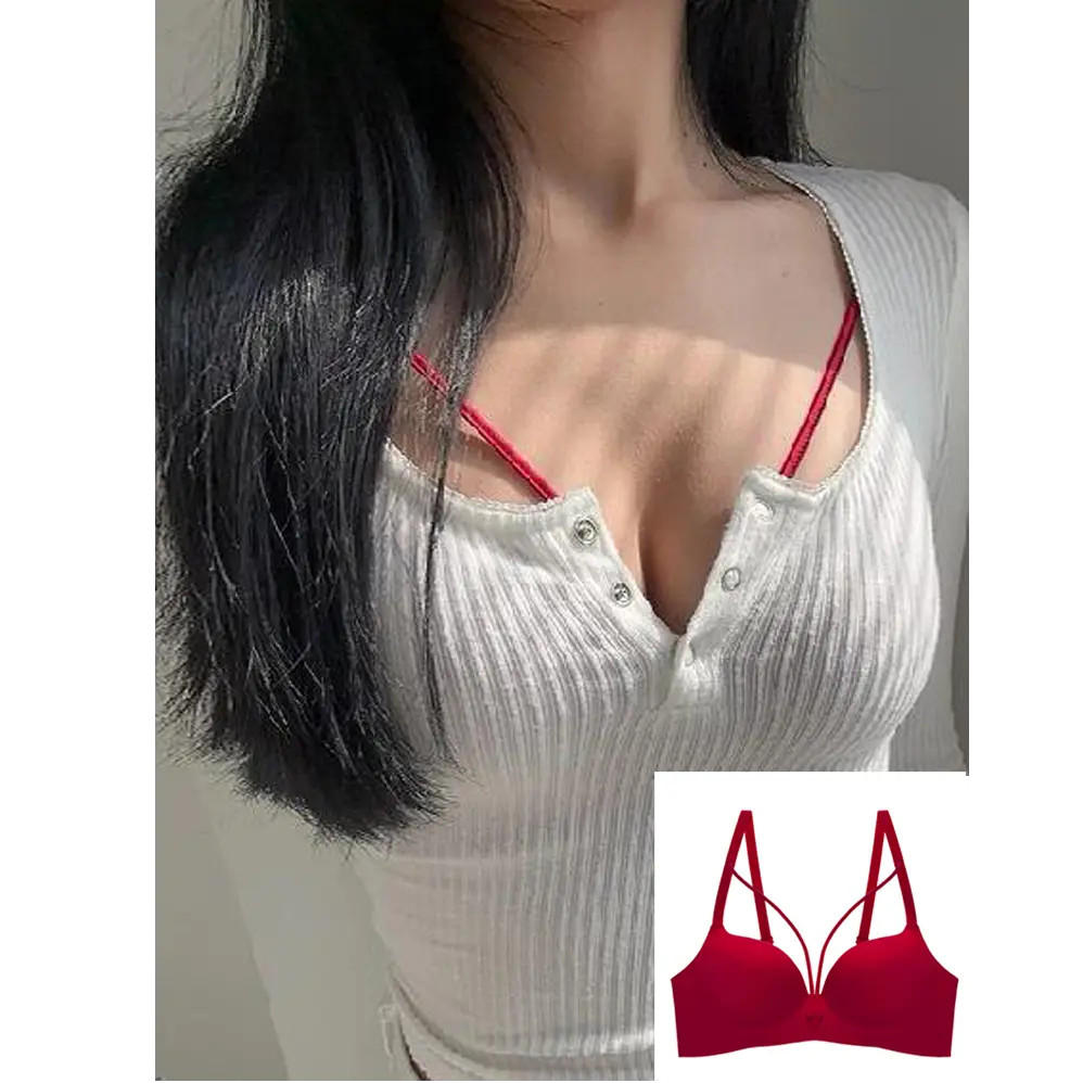 本命年红色性感内衣女小胸聚拢型显大无钢圈绑带挂脖文胸内搭纯欲