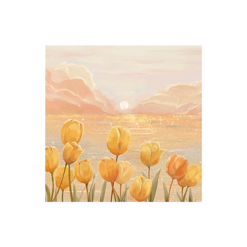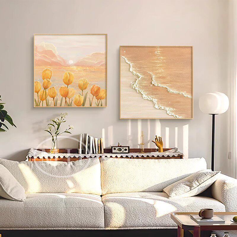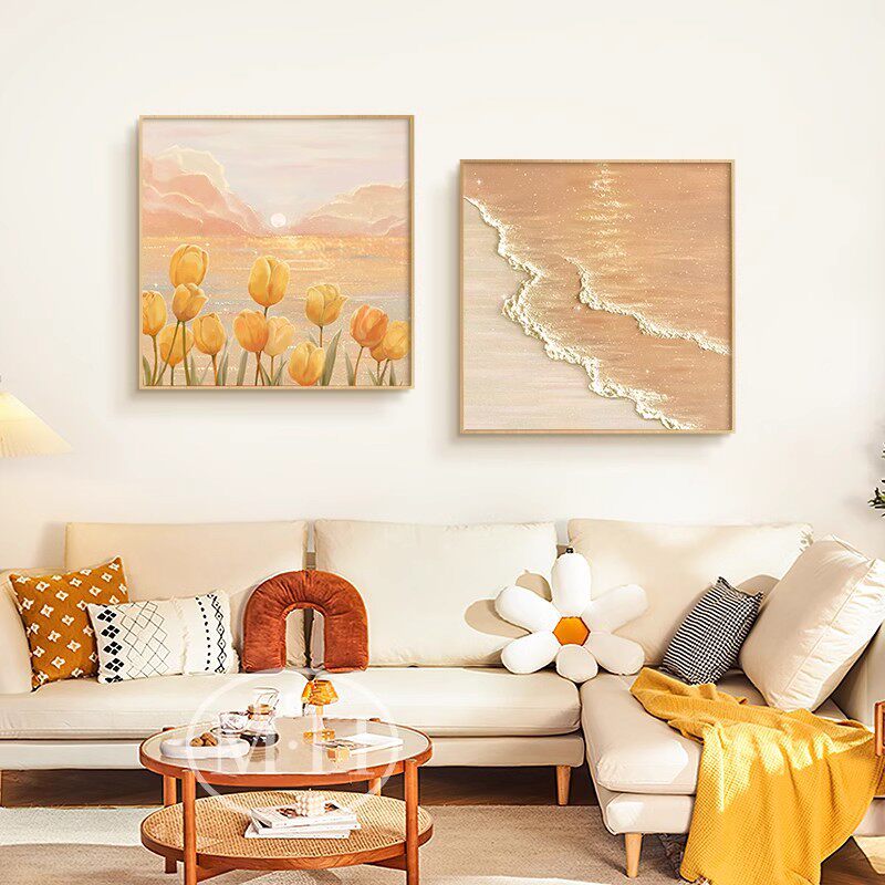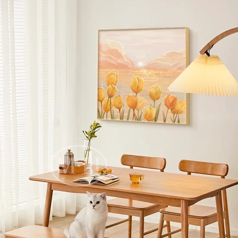 奶油风餐厅装 饰画郁金香风景挂画现代简约饭厅餐桌背景墙客厅壁画