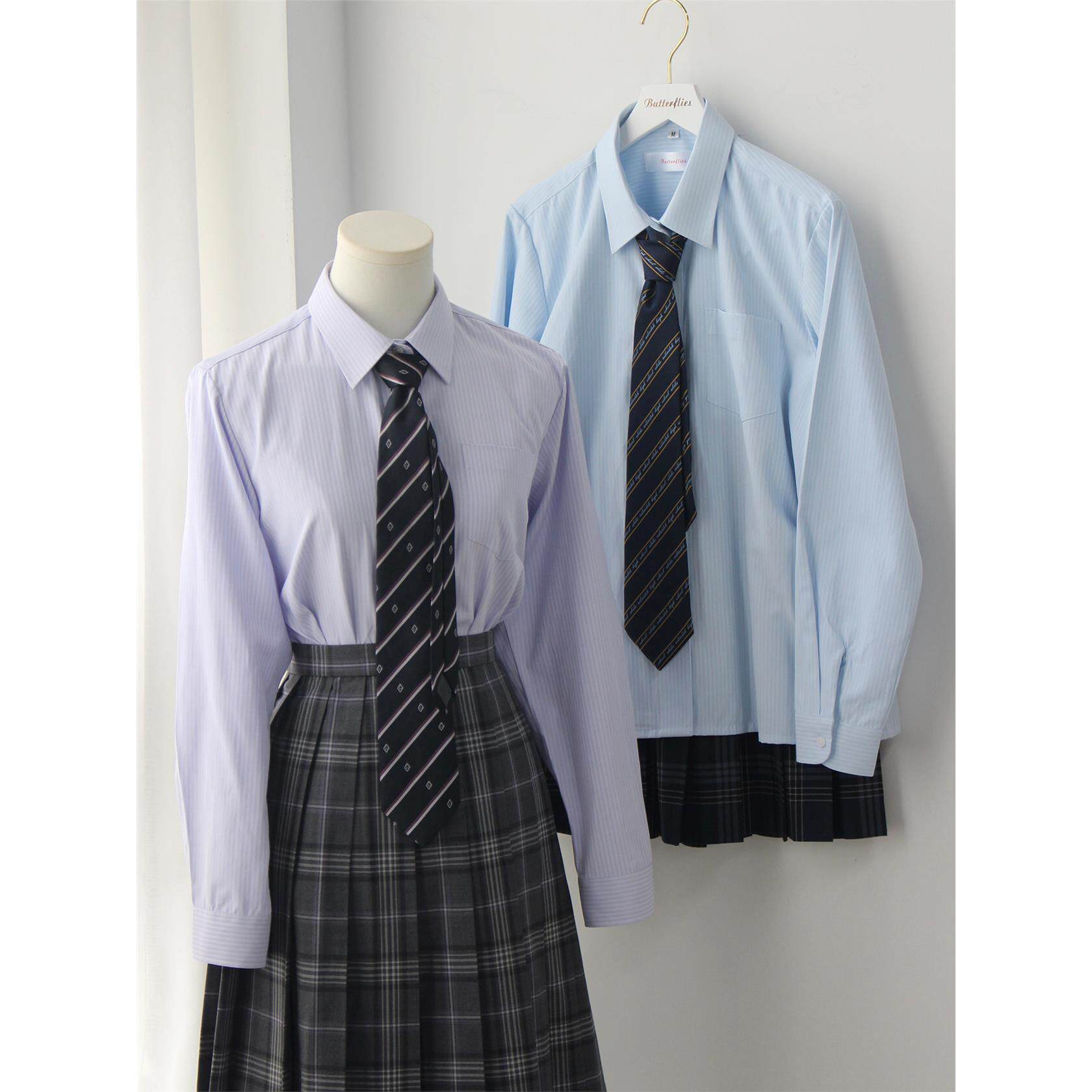 基础款 粉色条纹暗纹 长袖 角襟 蝶衣 校供感JK制服衬衫 奶油色衬衫