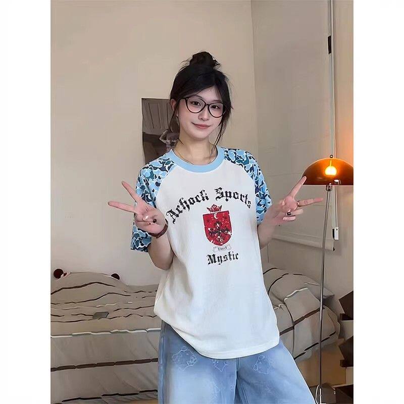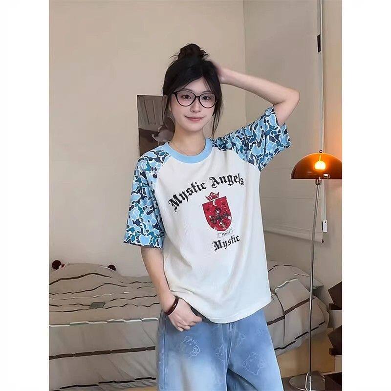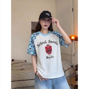 新款 T恤女夏季 230上衣三本针 复古贴布字母刺绣宽松短袖 高级感美式