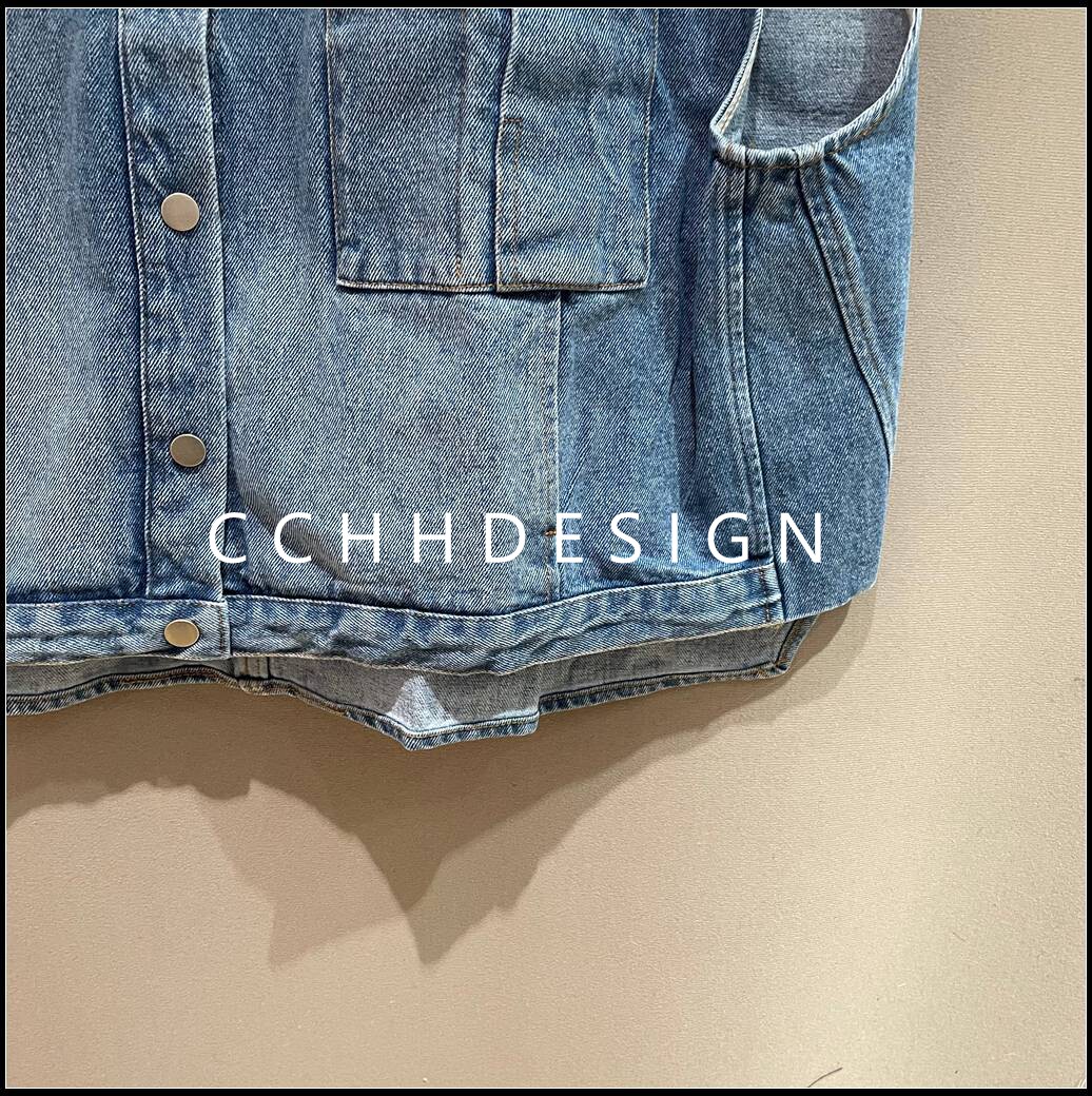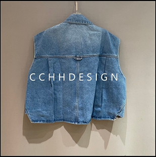 复古牛仔马甲女无袖 新款 翻领纽扣百搭显瘦马夹 2026春季 欧洲站女装