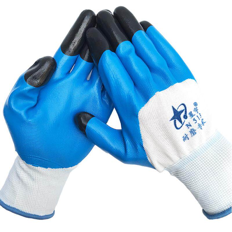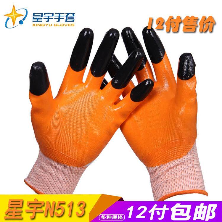 星宇N513半浸丁腈手套橡胶丁青加强指防护耐磨防油渍防滑劳保手套