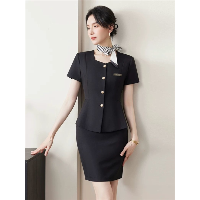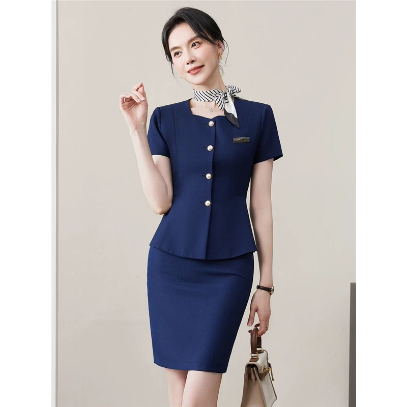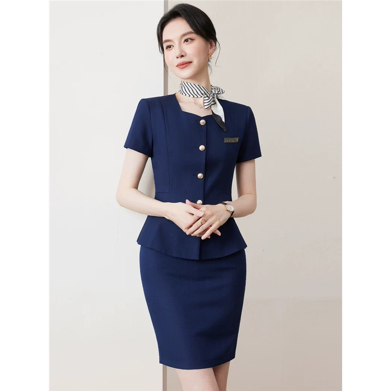 气质前台接待美业职业装 浅绿色短袖 裙女夏季 套装 美容院工作服 西装