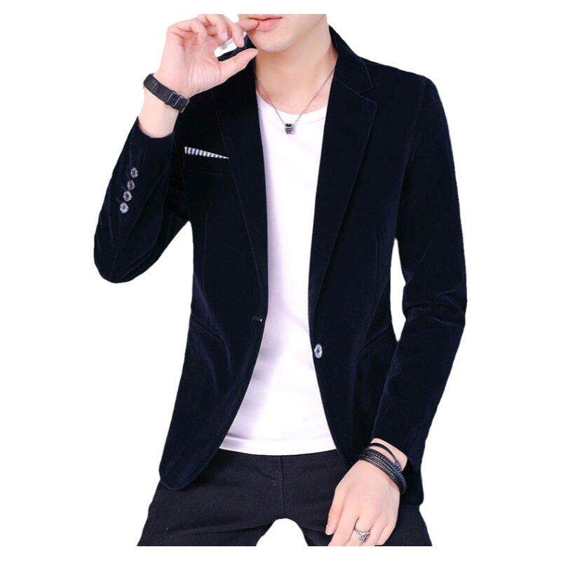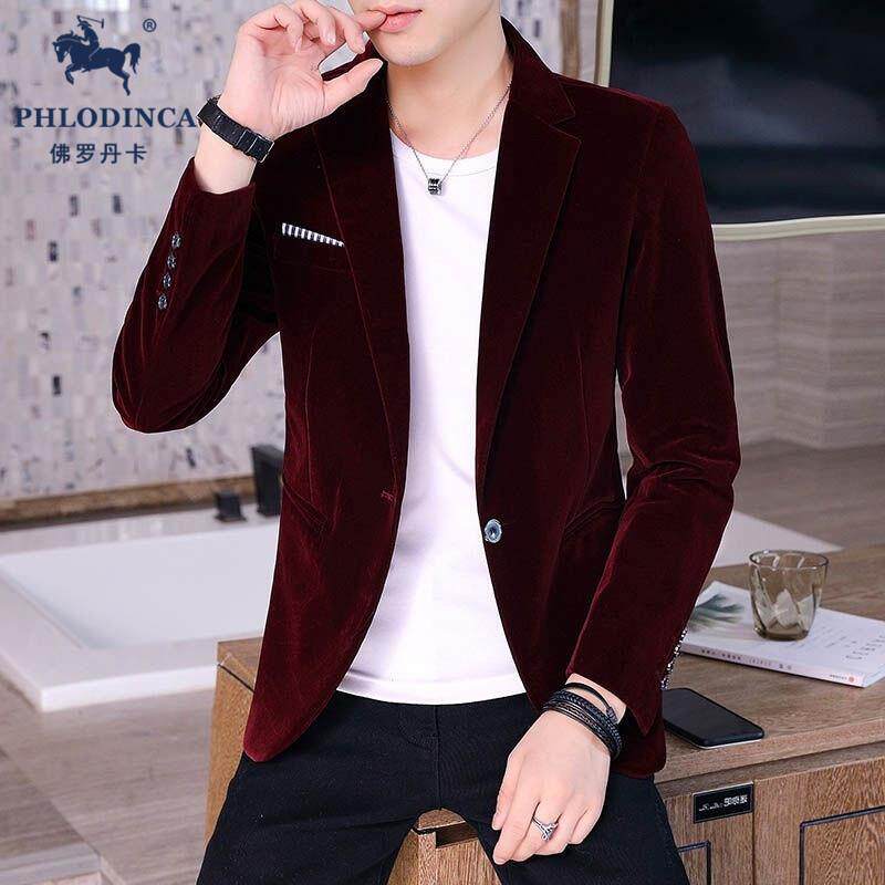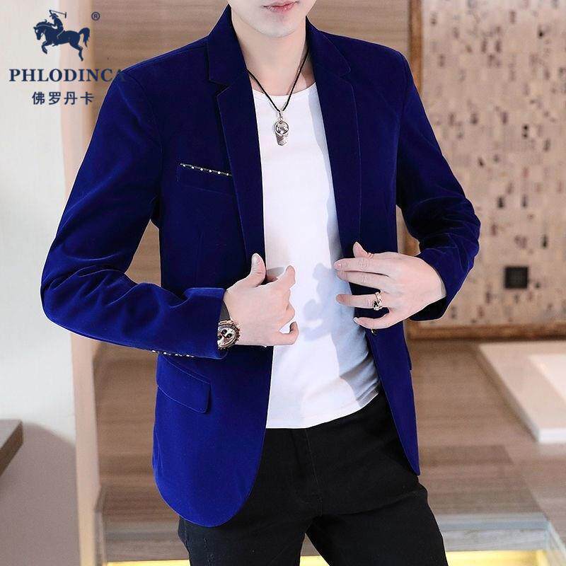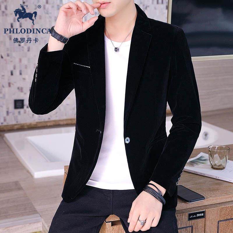 修身 外套男秋冬韩版 加绒小西服上衣 高级金丝绒休闲西装 PHLODINCA
