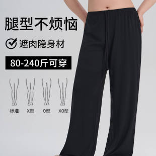 直筒裤 宽松阔腿裤 女2026新款 薄款 胖mm200斤加大冰丝夏季 黑色大码